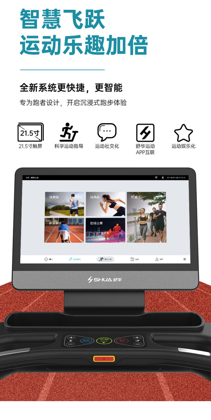 内置程序:搭载开元跑步机系统3.0 :4种程式(5km 往返、间歇、登山、燃脂)+体育考试+倒计模式:时间/距离/ 卡路里+在线约跑+地图跑+开元运动+应用软件