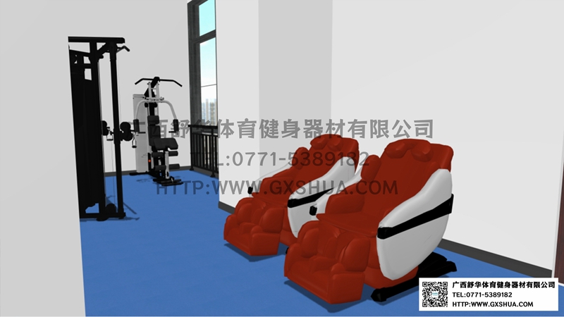 由于企业单位健身房的不规则性,根据场地、职工需求、整体预算,有氧器材区域配置开元跑步机2台,椭圆机、动感单车、划船器各1台,满足职工的日常有氧训练需求,有效地提升心肺功能;力量器械配置单人站综合训练器、小飞鸟,满足使用者全身锻炼的需求;自由力量区域配置史密斯机、哑铃套组、腹肌板满足多样化训练需求,促使健身训练更丰富,休闲区配置按摩椅,可以促进血液循环,让员工使用按摩椅放松身心,可以能够有效缓解工作压力。