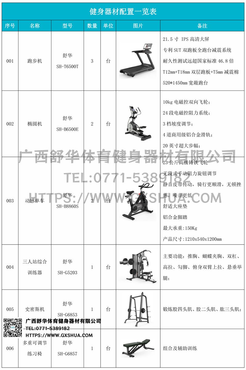 1.开元X5 Pro跑步机SH-T6500T*3台-采用高性能电机,提供稳定动力,支持长时间高强度运行,适合长时间有氧训练,跑台宽敞,提供舒适跑步空间,减少运动中的束缚感,适合不同体型用户。配备先进减震系统,有效缓解跑步对关节的冲击,降低运动损伤风险,内置智能控制系统,支持多种预设程序和个性化训练计划,用户可根据需求调整速度和坡度,满足多样化训练。