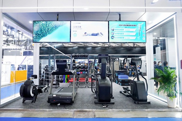 此次开元体育参展的最大亮点在于其别出心裁的展位设计。不同于传统的器材展示,开元此次以“开元健身”门店空间布局的概念来展现,将展位分为前台、洽谈区、体测区、团课区、私教区、有氧区以及综合训练区等多个区域。这种布局方式旨在为参展观众提供全方位、沉浸式的体验,使其能够更深入地了解“开元健身”的核心理念和服务。