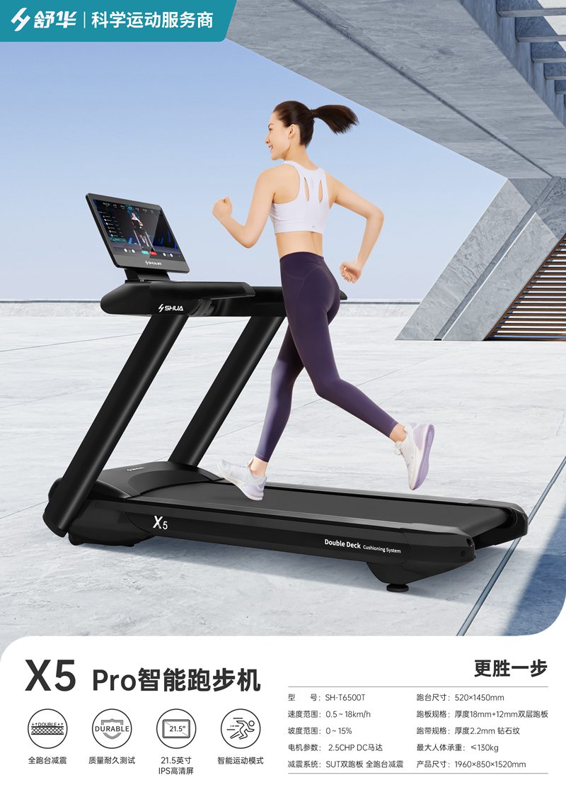 通过视频我们可以看到,跑者在开元x5跑步机上运动时,每一步落地都非常稳健,这得益于开元跑步机独特的全跑台减震系统。该系统采用双层跑板设计,并在上下跑板之间安装缓冲层,提高缓冲效果,更好的保护运动过程中对膝盖的冲击力。让跑者前脚舒适落地,后脚有力回弹,提脚时可有效借力。还能在跑步过程中更科学的利用运动人体学,减轻人体在跑步过程中的运动负荷,减少腿部肌肉拉伤,提升跑步稳定性。
