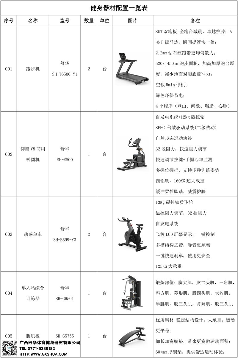 1.开元X5智能跑步机SH-T6500*2台-新X5拥有740mm的宽敞跑台,520mm宽跑带,跑步时更畅快无拘束。搭载SUT全跑台减震系统,针对跑步冲击区进行前、中、后以及双侧全方面避震,有效分散跑步时对跑者膝盖和踝关节的冲击,跑步也能更护膝。采用T18MM跑板+5MM减震棉+T12MM双层专利跑板减震结构设计的韧性跑板,承重力强,回弹舒适,带来缓震护足的舒适跑步体验。搭载了一颗持续马力2.5HP,峰值马力5.0HP的强劲动力马达,能为跑步提供源源不断的动力,让跑步流畅不卡顿。跑步机的速度可达18km/h,能够满足更专业的跑步锻炼需求。拥有15段的电动坡度扬升功能,让跑步不至于平地跑,更具挑战性。跑步时,实时了解并控制心率,能让运动更加高效。X5跑步机搭载手握心率检测系统,同时还支持心率臂带和心率胸带的连接,能满足不同类型用户的选择使用需求。