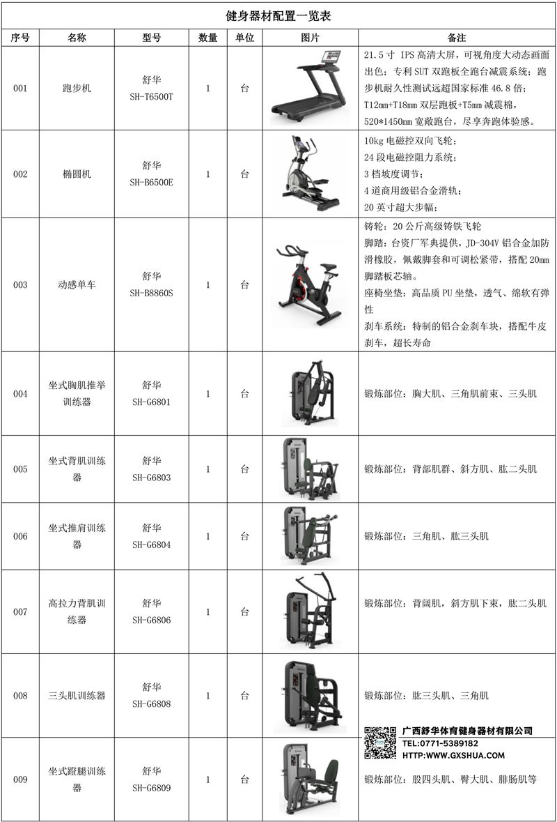 1.开元X5 Pro高端跑步机SH-T6500T*6台-经典时尚造型配色,简约Z字车架造型,融合各种家居风格,彰显奢华运动质感;21.5英寸高清触控屏-传承动感美学,成就时代典型之作全新升级V3.0系统,支持系统在线升级,极大提升用户交互体验;专利减震跑台-采用SUT双层跑板、全跑台减震系统,且该减震科技获得国家专利,有效减少关节冲击,52cm宽跑台搭配精抽雏形滚筒,稳固不位移;F级马达动力强劲-5.0HP峰值马达,2.5HP持续输出,0~15%坡度调节,最高18km/h时速,胜任不同类型训练;内置9种运动程序,支持场景跑、在线约跑、一键体育考试。不仅可以跑步,还能实时记录运动数据,探索丰富健身课程,边学边跑,拓展运动边界,尽享奔跑体验感。