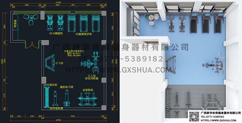 此方案要求面积小于83m²,适用于企事业单位、酒店会所、楼盘社区、工作室、学校等健身场所,能满10-15人同时健身使用。(方案根据场地空间大小、预算、产品需求等进行配置仅为启发性参考)