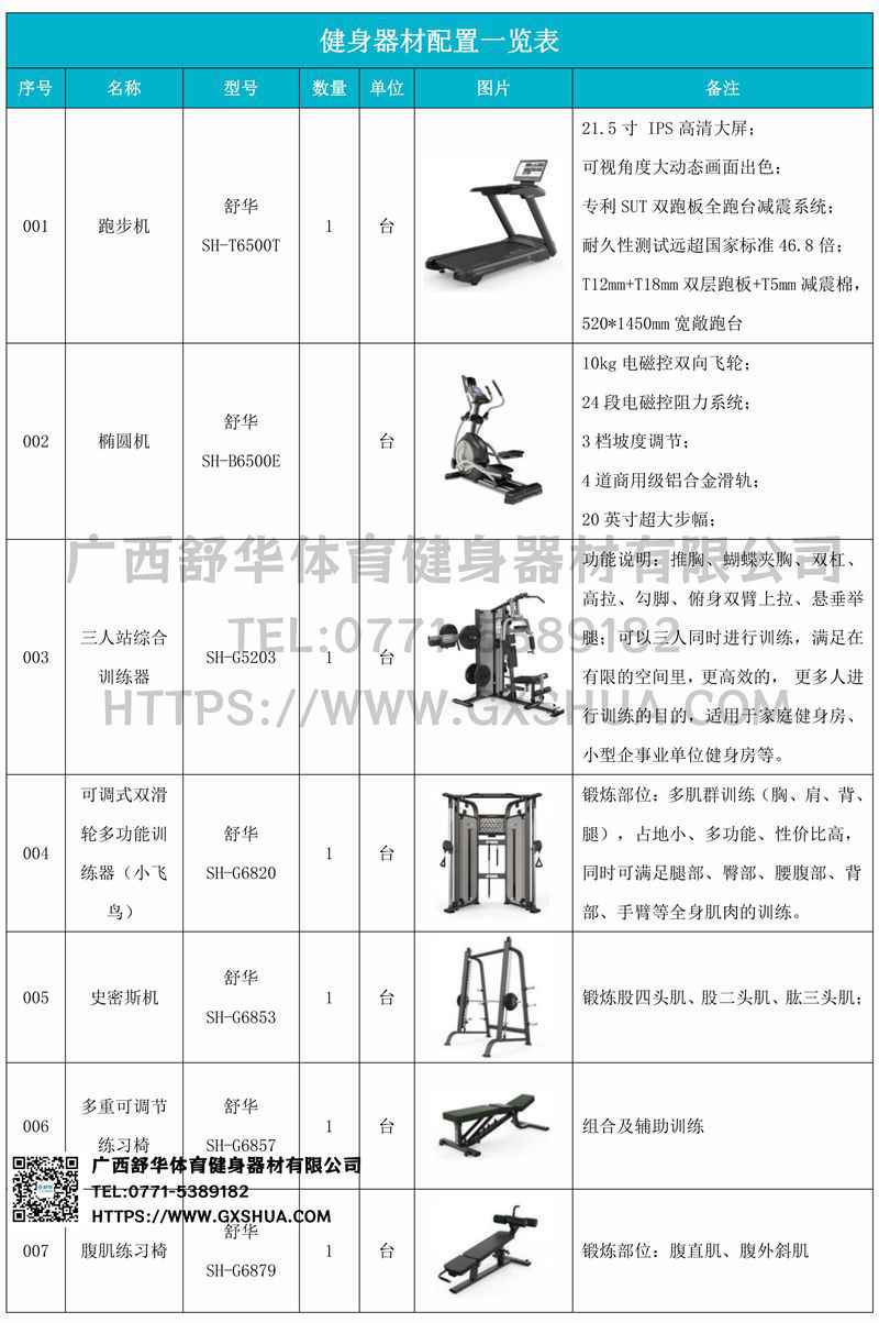 1.开元X5 pro跑步机SH-T6500T*3台-采用高性能电机,提供稳定动力,支持长时间高强度运行,适合长时间有氧训练,跑台宽敞,提供舒适跑步空间,减少运动中的束缚感,适合不同体型用户。配备先进减震系统,有效缓解跑步对关节的冲击,降低运动损伤风险,内置智能控制系统,支持多种预设程序和个性化训练计划,用户可根据需求调整速度和坡度,满足多样化训练。